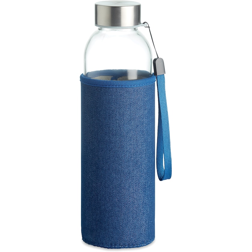 Borraccia in vetro con custodia in neoprene dal look denim. La borraccia ha una capienza di 50 cl. Il tappo è in acciaio inossidabile. Questa borraccia non è adatta alle bibite gassate.
