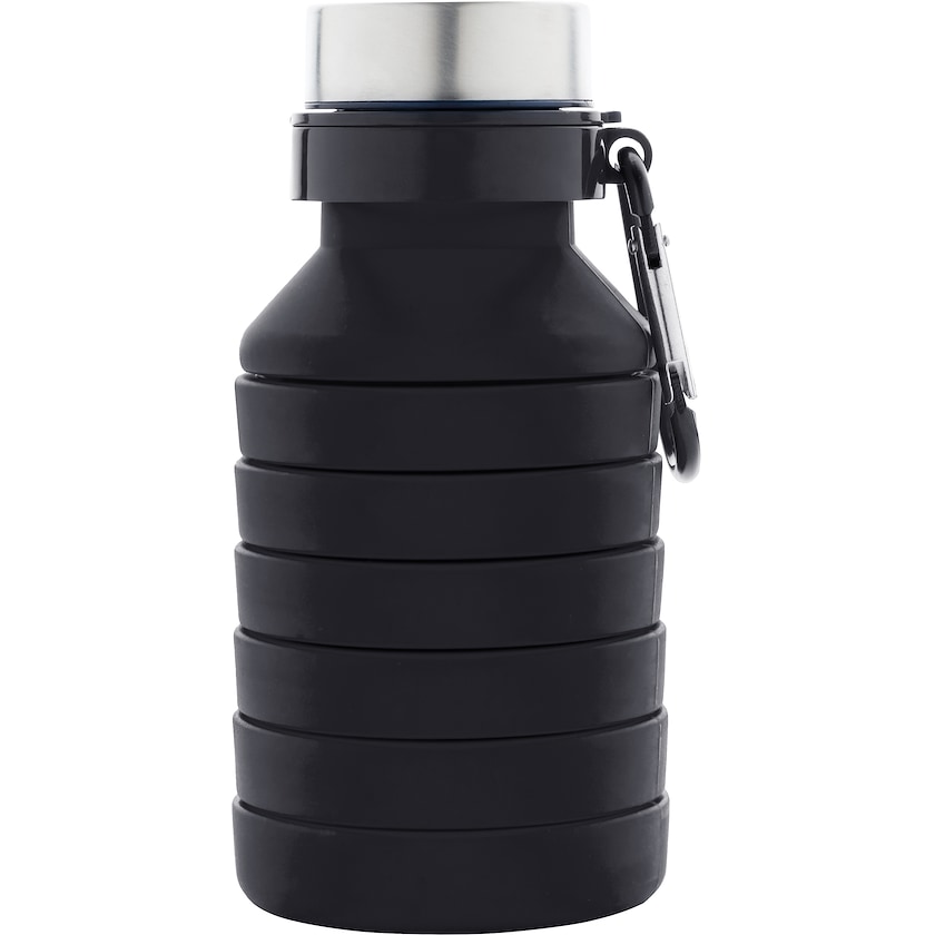 Borraccia pieghevole in silicone. La borraccia occupa il 50% di spazio in meno quando è piegata ed è quindi perfetta per essere portata in borsa. Il silicone è 100% certificato ad uso alimentare e facile da pulire. Consegnata in una bella scatola regalo. Può essere personalizzata con un'etichetta resinata stampata digitalmente e posizionata sul tappo, oppure con un'incisione a laser sul tappo.