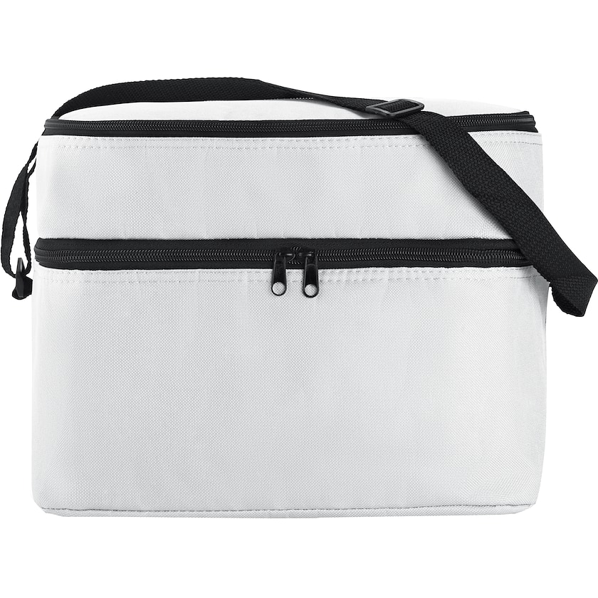 Borsa frigo d'alta qualità con due scomparti spaziosi. Borsa frigo è fabbricata in poliestere resistente con l'intero in alluminio foderato. La tracolla è regolabile.
