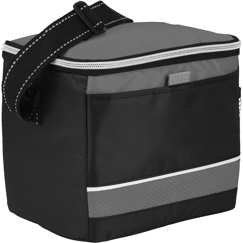Bella piccola borsa frigo, un po' più costosa. Questo modello ha uno scompartimento principale con chiusura zip e una tasca frontale. Su un lato esterno c'è una tasca a rete per gli oggetti più piccoli. Stampabile solo ad un colore.