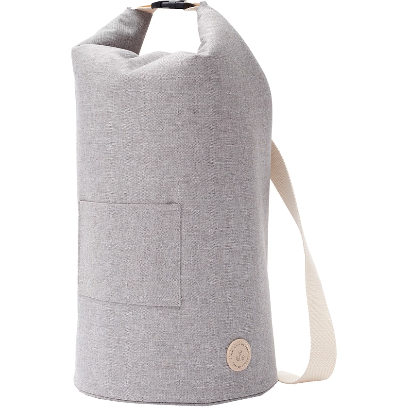 Borsa termica ecologica in versione sacca da mare. Questo bel tessuto mélange è realizzato al 50% con bottiglie di PET riciclate. La tracolla è in cotone.