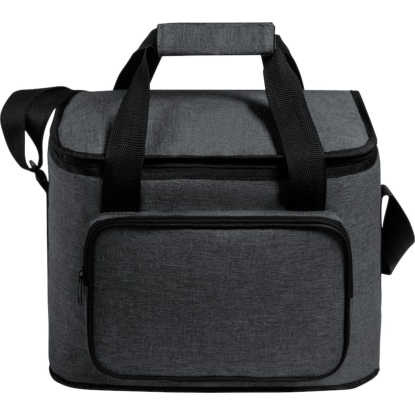 Borsa termica ecologica in rPET. Oltre allo scomparto principale, questa borsa termica è dotata anche di una tasca sul davanti. La tracolla permette di portarla anche in spalla. L'rPET è un materiale ecologico ottenuto da bottiglie di PET riciclate.