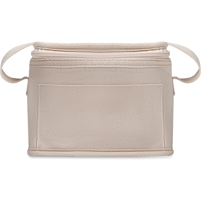 Borsa termica in tessuto resistente di cotone non sbiancato. Sul davanti si trova una piccola tasca. La borsa termica si porta a mano.
