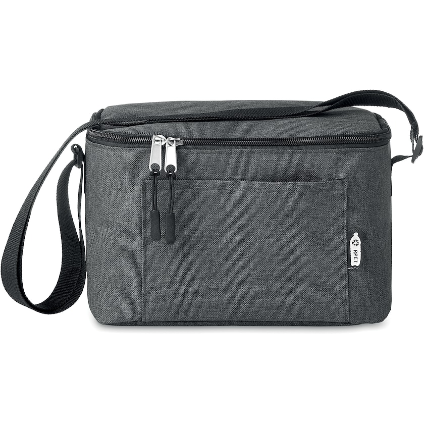 Borsa frigo eco-compatibile per 6 lattine da 33 cl. La borsa è realizzata in rPET eco-compatibile, mentre la fodera è in PEVA. Sul davanti si trova una tasca per oggetti più piccoli.