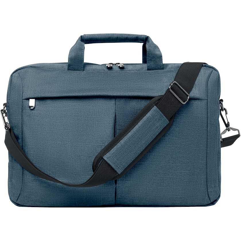 Borsa per portatile professionale in poliestere resistente con dettagli in metallo. La borsa ha uno scomparto imbottito che contiene la maggior parte dei computer fino a 15 pollici. Sul lato anteriore si trova una tasca con chiusura a lampo e sul lato posteriore un gancio per trolley.