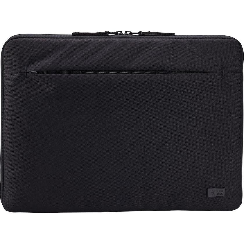 Custodia per PC personalizzata in poliestere riciclato. Adatto alla maggior parte dei PC da 14 pollici. All'interno si trova un'imbottitura spessa 10 mm. Sul davanti si trova una tasca dotata di cerniera per oggetti più piccoli.