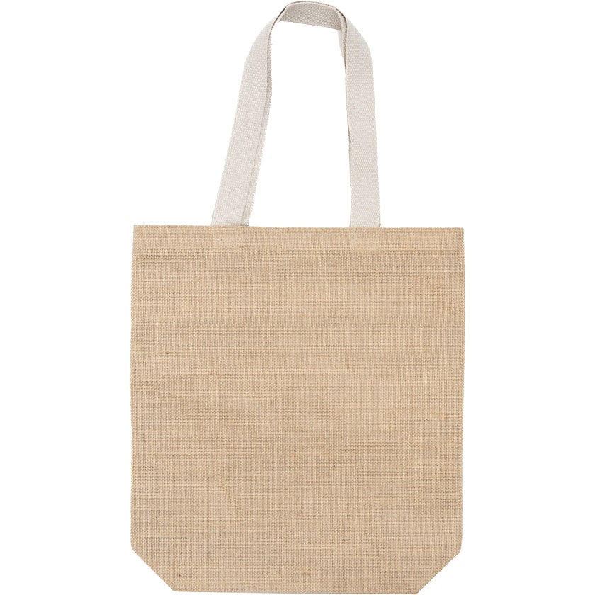 Shopper in juta con manici in cotone. Le pareti interne sono laminate per garantire maggiore resistenza. Ecco la shopper per la spesa perfetta! Stampa possibile a un solo colore.