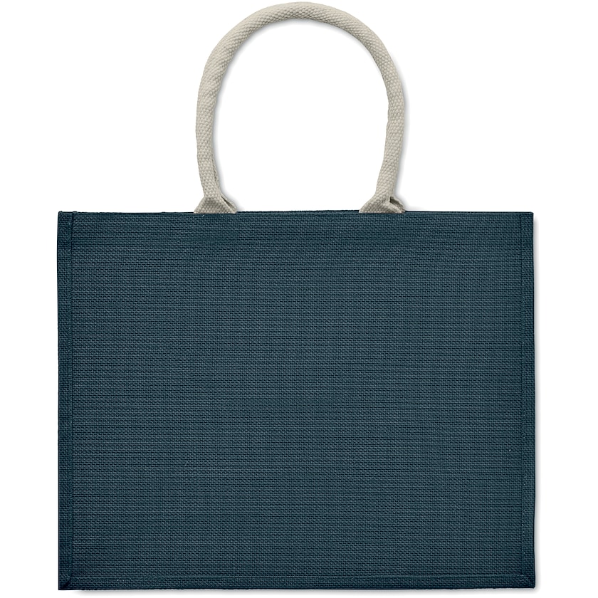 Borsa di juta laminata con manici in cotone. Sarà perfetta sia per la spiaggia che per andare a fare la spesa. Questa shopper è ancora più resistente grazie alla sua laminatura.