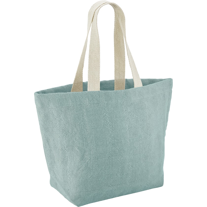 Shopper in morbido tessuto di juta. Può essere portata a mano o in spalla. All'interno si trova una tasca per oggetti più piccoli.