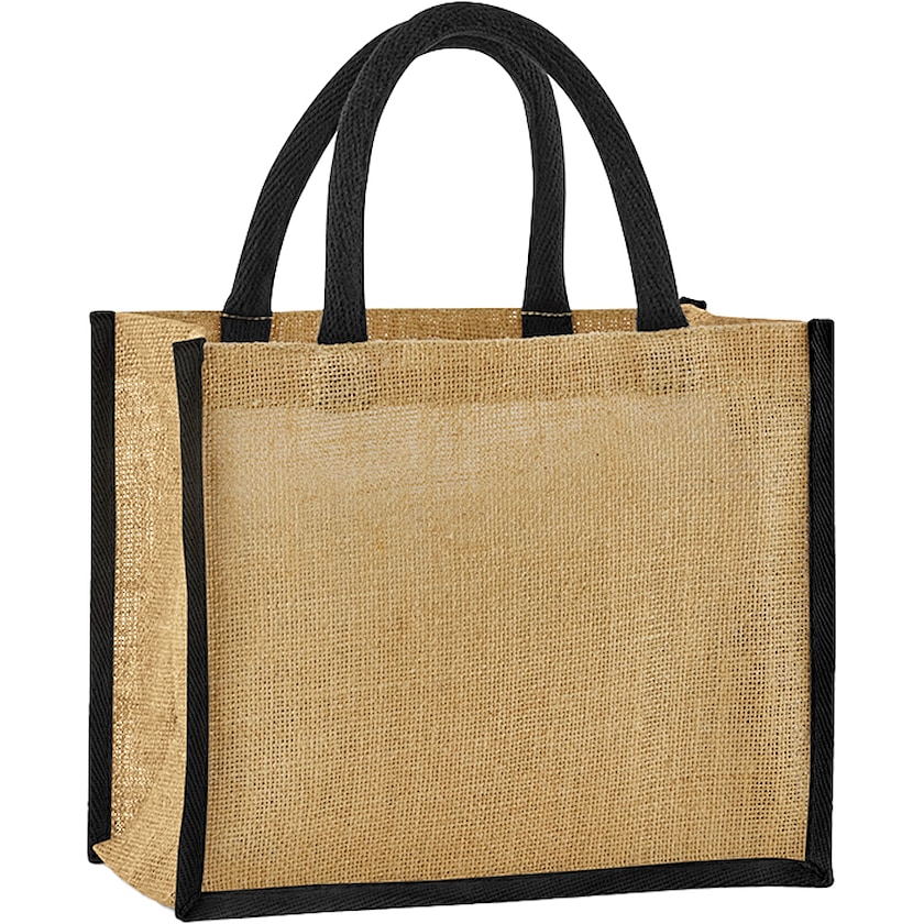 Bella shopper in juta con manici di cotone. Il tessuto di juta non è laminato dando alla shopper un aspetto naturale.