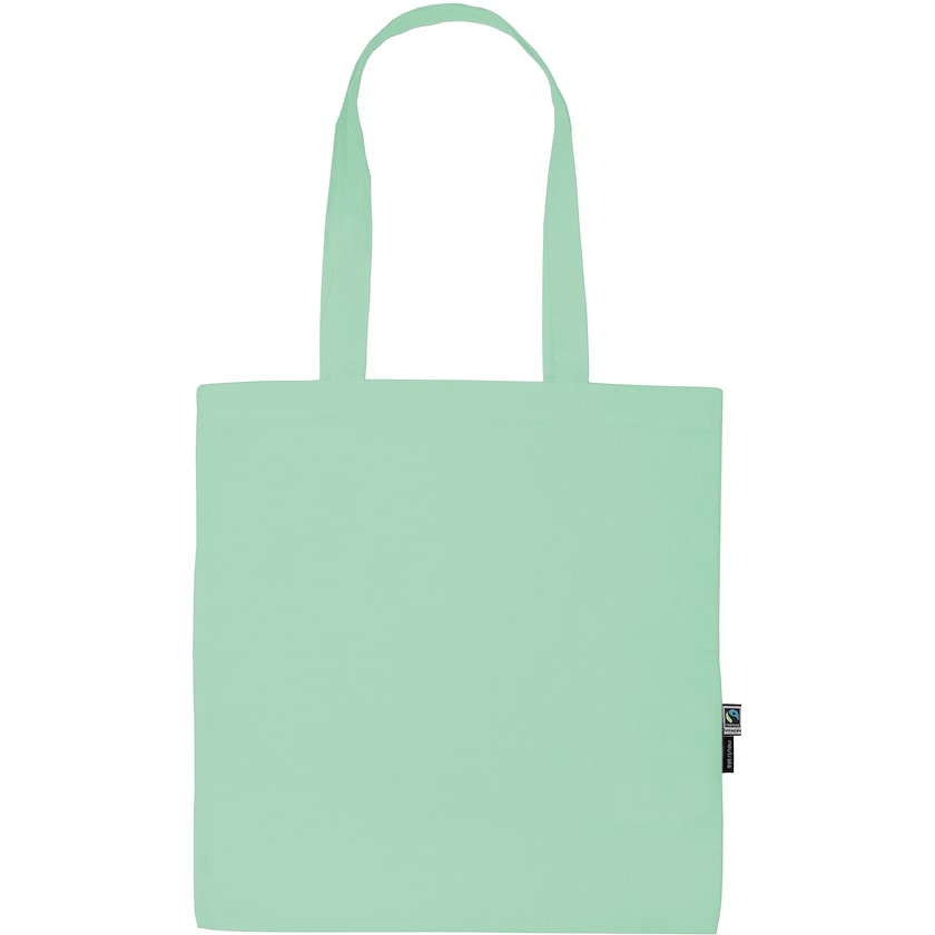 Borsa shopper colorata in cotone certificato Fairtrade. Con manici lunghi 66 cm. Disponibile in molti colore. Certificatoa secondo Fairtrade, EU Ecolabel, SA8000 e Oeko-tex.