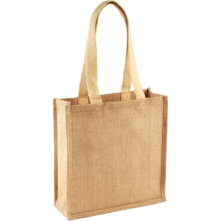 Shopper in juta con manici in cotone robusto. Può essere portata a tracolla o a mano.