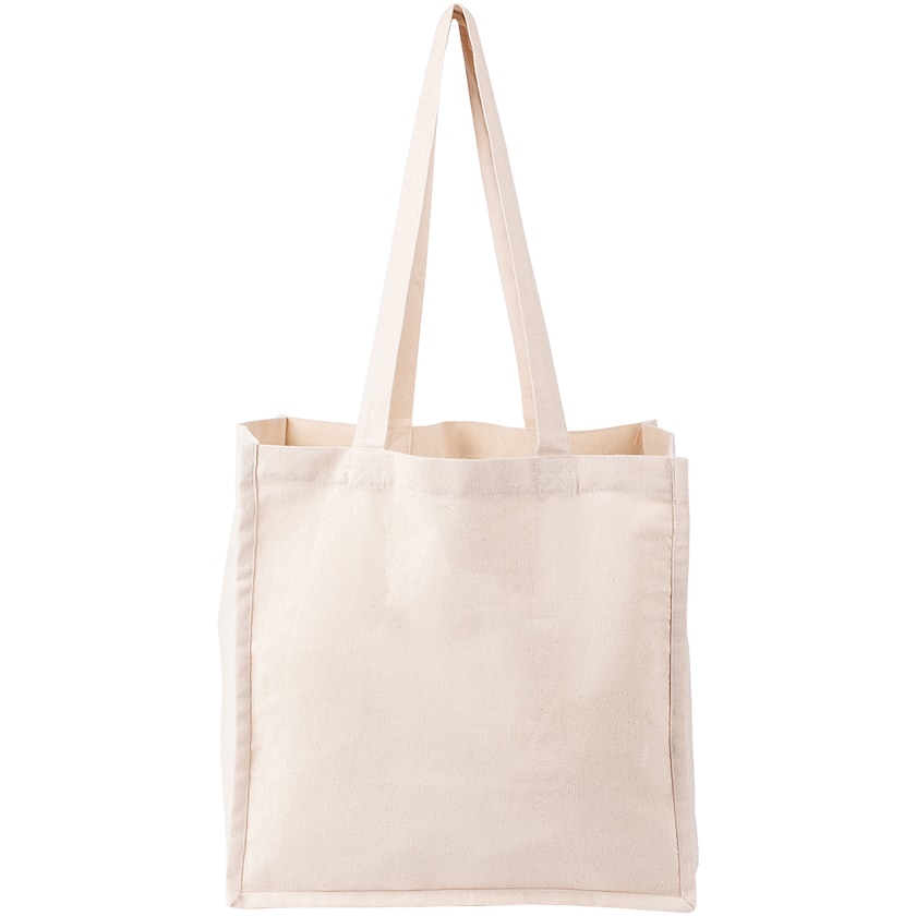 Borsa extra capiente realizzata in cotone resistente. La profondità della borsa misura ben 20,5 cm mentre la tela è in cotone resistente da 270 grammi.
