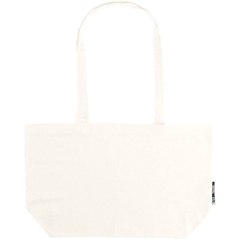 Borsa in stoffa realizzata in cotone biologico, certificato Fairtrade. Il manico ha una lunghezza di 80 cm. Certificata secondo Fairtrade, EU Ecolabel, SA 8000 e Oeko-tex. Ordina borse di cotone ecologiche con stampa personalizzata da Axon Profil!