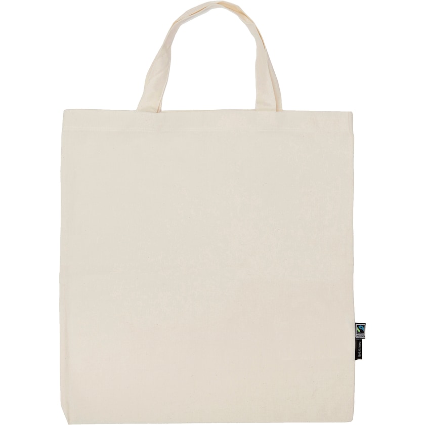 Borsa in stoffa in colore naturale di cotone biologico, certificato Fairtrade. I manici sono lunghi 33 cm. Questo modello può essere ordinato anche con manici più lunghi. Prodotto certificato secondo Fairtrade, Ecolabel UE, SA8000 e Oeko-tex. Ordina le tue borse in cotone organico con la vostra personalizzazione da Axon Profil!