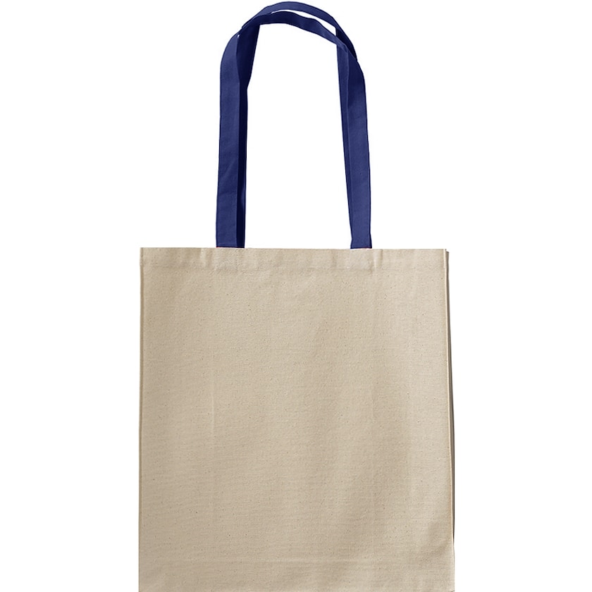 Borsa shopper in cotone naturale da 220 grammi con fondo largo e manici in colori contrastanti. I manici lunghi permettono il trasporto comodo sulle spalle. Il fondo largo rende la borsa più spaziosa delle shopper normali.