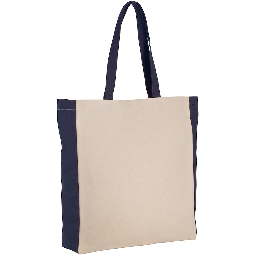 Borsa Shopper in cotone con lati a contrasto e i manici corti. La shopper è realizzata con un tessuto da 310 grammi di cotone 100%. Una borsa di cotone unica di alta qualità.