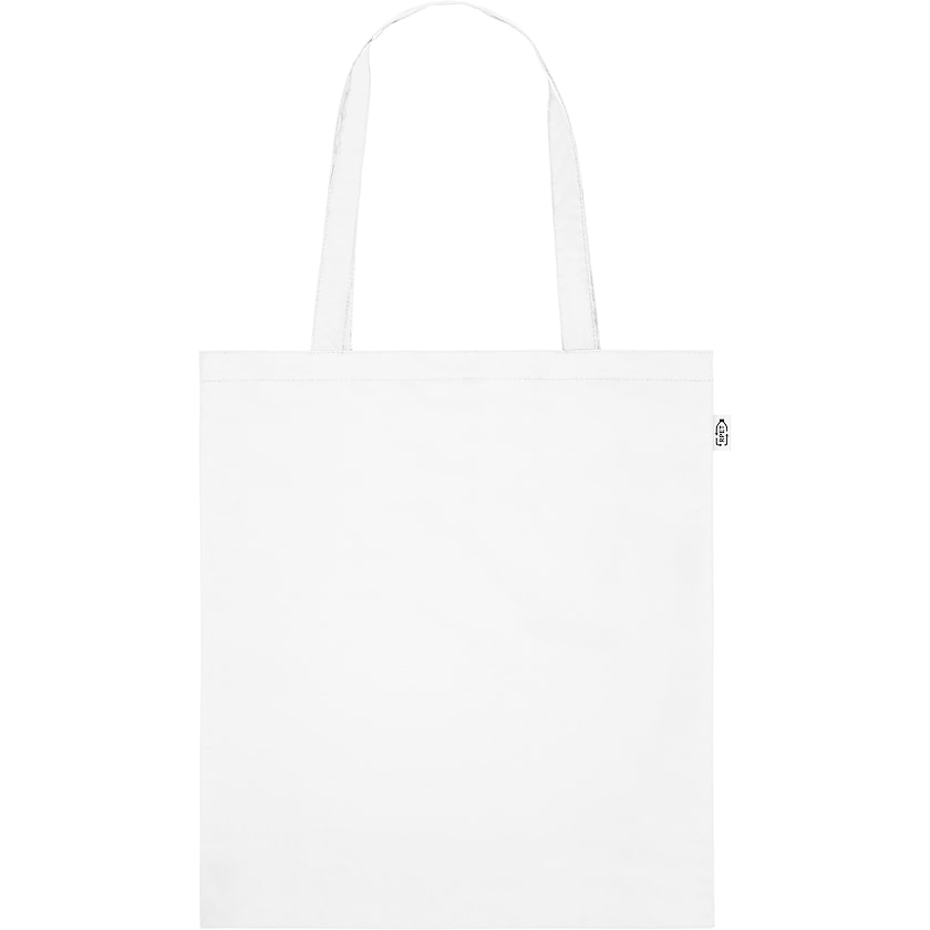 Shopper per la spesa in 100% rPET. I manici sono lunghi 55 cm. Il rPET è un materiale ecologico realizzato in plastica riciclata.