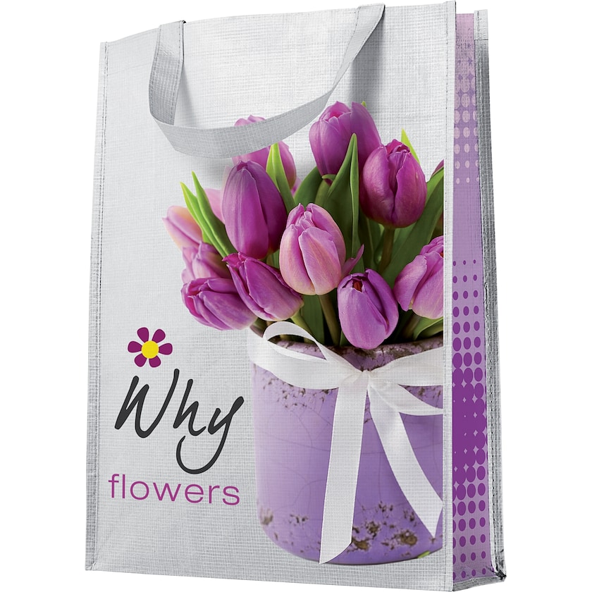 Shopper per la spesa resistente con tessuto laminato. Questa shopper per la spesa viene prodotta su ordinazione così da permettere che la stampa ne copra tutta la superficie, inclusi gli angoli. Il tessuto è in polipropilene (PP-woven) ed è laminato per garantire una resistenza ancora maggiore. Si tratta di un tessuto molto robusto e praticamente indistruttibile con il normale uso. L'ordine minimo è di 1000 pz.