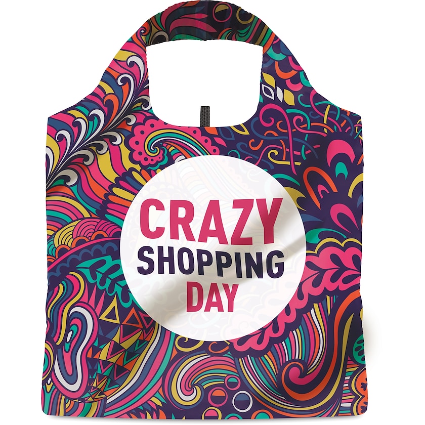 Shopper per la spesa pieghevole personalizzata sull'intero tessuto. Lindsey è prodotta in resistente rPET. L'intera parte anteriore e posteriore della shopper e le tasche sono dotate della tua stampa. La shopper piegata misura 130 x 80 mm. Dato che la shopper viene prodotta su ordinazione il tempo di consegna è più lungo del solito.