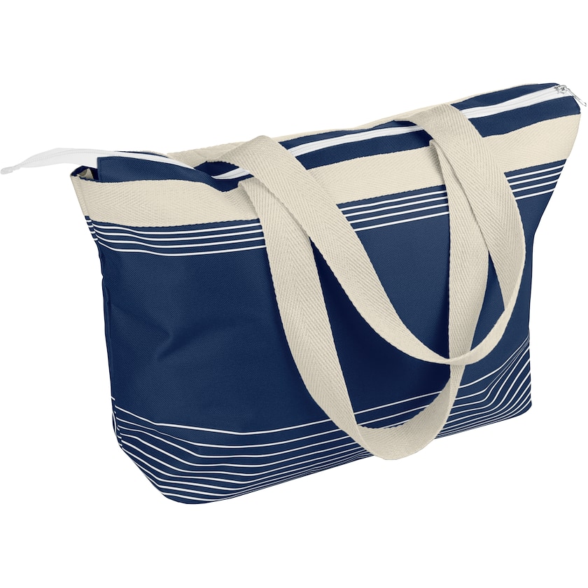 Borsa da spiaggia senza tempo utlizzabile anche come borsa shopper. La borsa è realizzata in poliestere con dettagli e manici in cotone canvas ed ha anche una tasca interna.