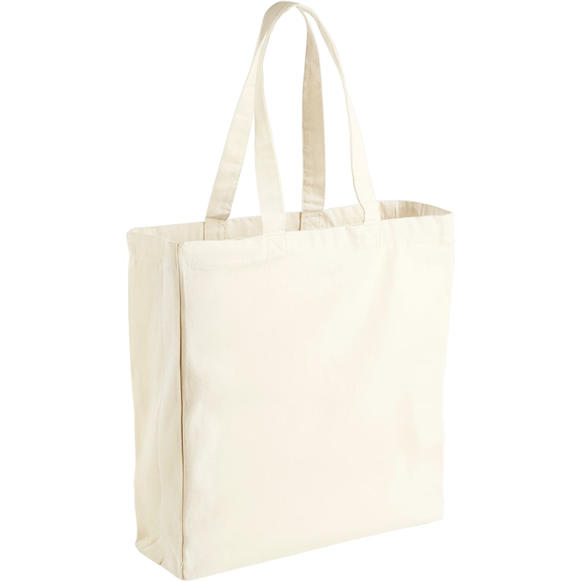 Shopper in cotone di colore naturale. Grazie ai manici lunghi 580 mm questa borsa può essere trasportata a mano o a spalla.