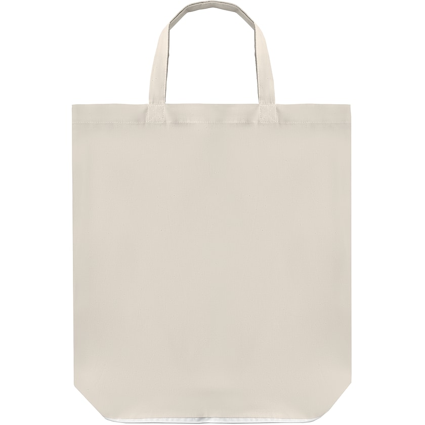 Borsa shopper in cotone pieghevole e con cerniera lampo. Occupa pochissimo spazio. La shopper è fabbricata in cotone dal colore naturale e ha manici corti. Viene consegnata stesa, non piegata.