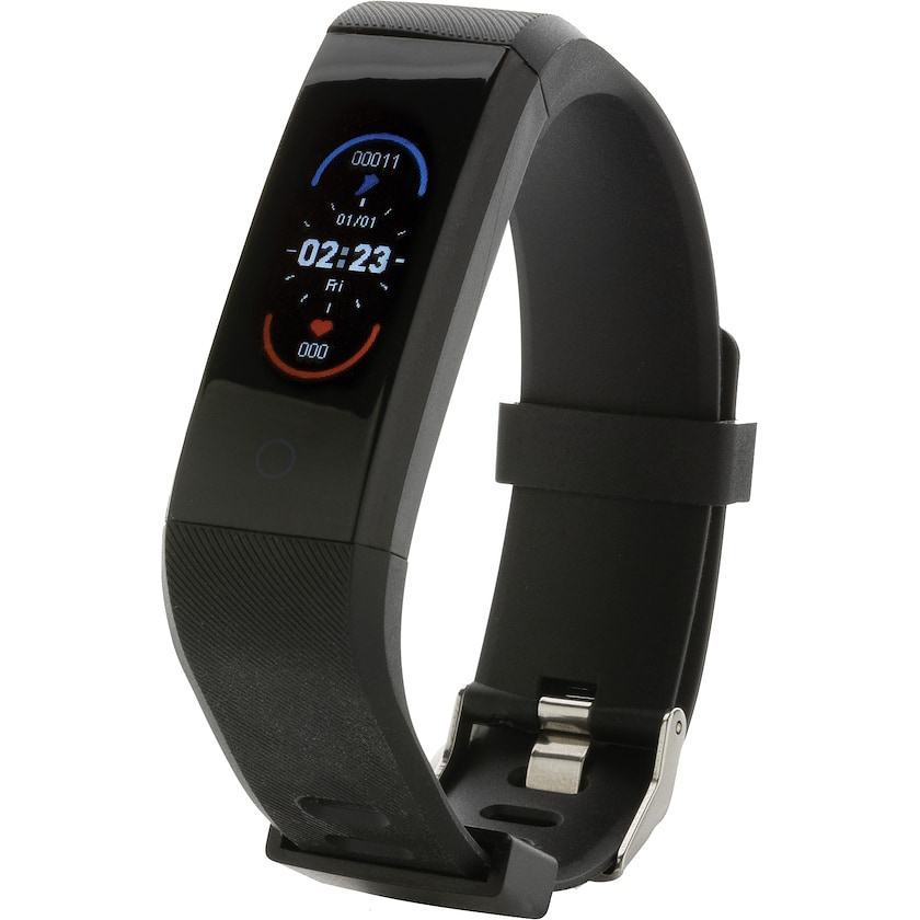 Braccialetto fitness impermeabile con schermo touch. Questo braccialetto fitness misura: la distanza, il consumo di calorie, il battito cardiaco, la pressione, l'ossigenazione del sangue, il numero di passi e il sonno. Sarà il braccialetto ideale sia per il giorno che per la notte. Ha un'autonomia di 15 giorni se in standby e di 7 giorni se in pieno utilizzo. Un'applicazione abbinata può essere scaricata gratuitamente. Questo braccialetto è realizzato in TPU riciclato.