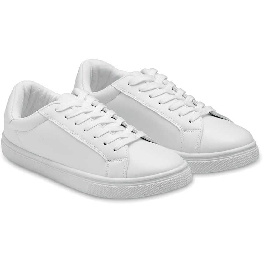 Sneaker personalizzate. Crea sneaker uniche per la tua azienda! Callistoga sono realizzate in comoda ecopelle con suola in gomma. Le scarpe sono in poliestere. Componi tu stesso le taglie. Consegnate in una scatola di cartone bianca. I prezzi si riferiscono alla stampa su una delle scarpe.