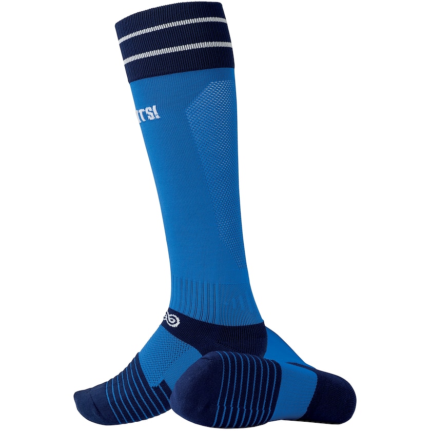 Calzettoni da calcio a maglia personalizzati. Le calze hanno supporto del piede a 360 gradi e rinforzo sul polpaccio e sulla parte esterna della suola. Scegli tra calze a foderatura singola o suola in spugna che aumentano l'ammortizzazione. Le calze a foderatura singola sono realizzate in 95% poliestere e 5% elastan mentre quelle con suola in spugna sono realizzate in 75% poliestere, 17% cotone e 8% elastan. Il tessuto viene prodotto completamente secondo i tuoi desideri e può contenere al massimo cinque colori. Scegli tra le taglie 36-39, 40-43 e 44-46. Puoi scegliere tu stesso la distribuzione di taglie (ma devono essere almeno 50 paia per taglia). L'etichetta di carta personalizzata (in una sola forma) è inclusa nel prezzo.