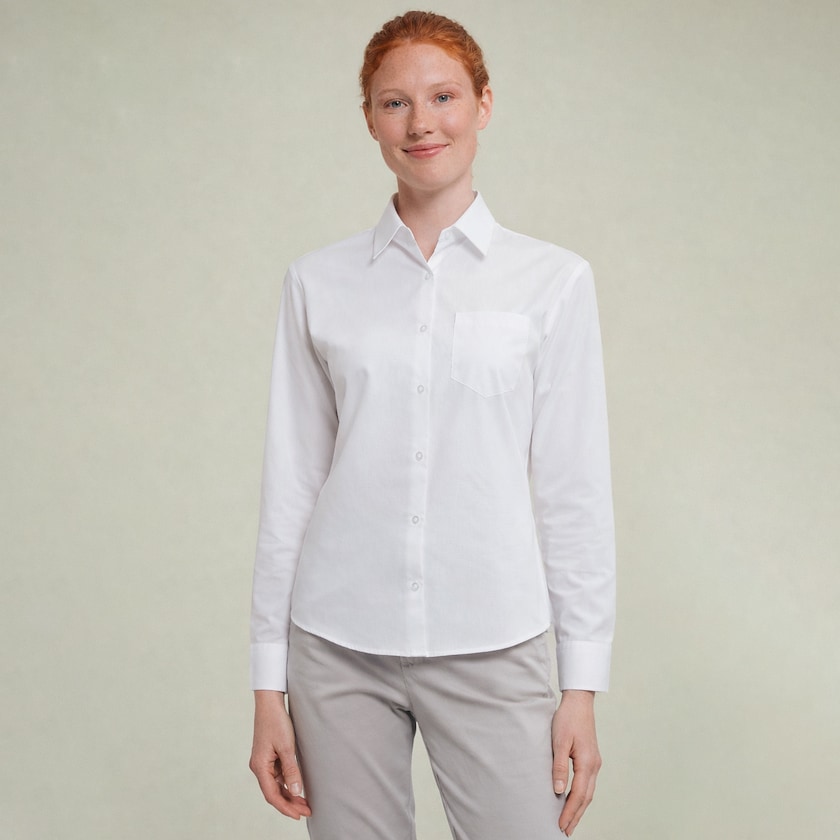 Camicia a maniche lunghe da donna in cotone 100% easy-care.