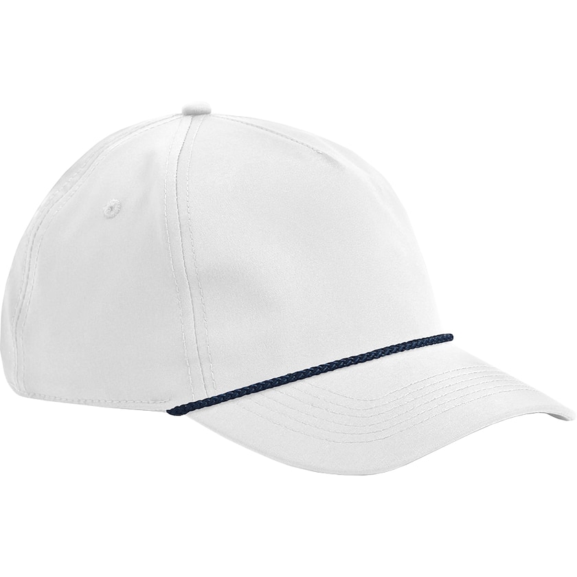 Cappellino da golf con caratteristica striscia sulla visiera. Il cappellino è realizzato in poliestere riciclato. Un cappellino elegante per il campo da golf.