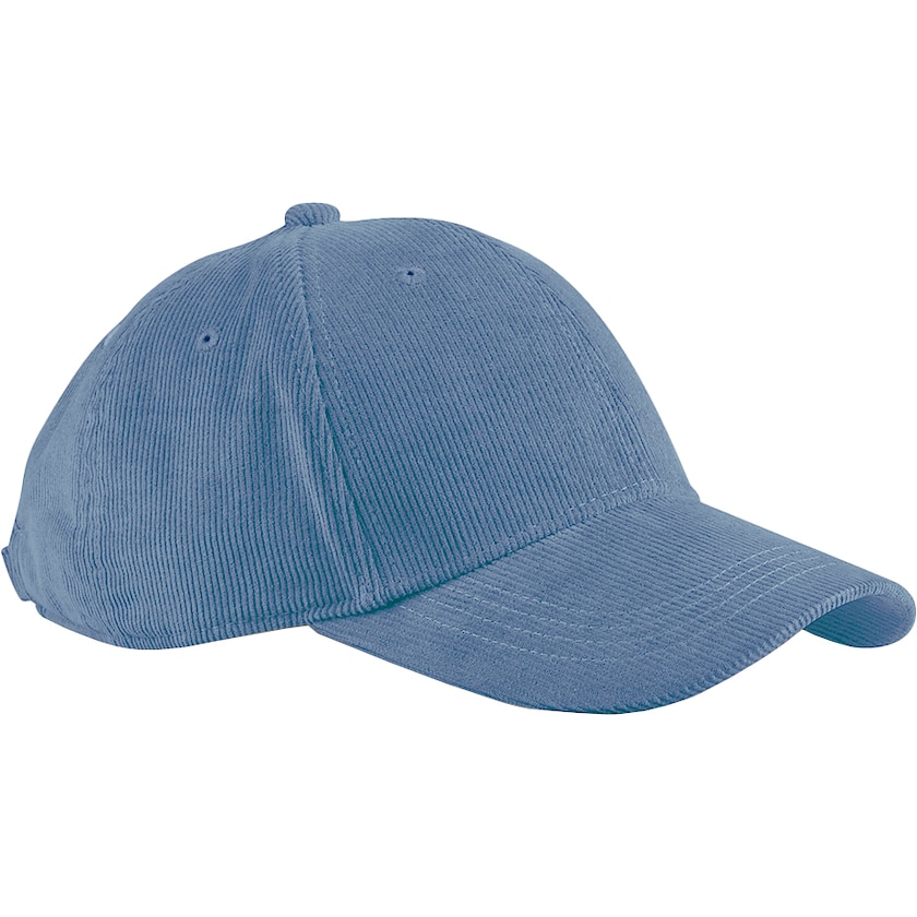 Cappellino in tessuto manchester. Il cappellino è dotato di visiera ricurva e la personalizzazione viene realizzata con ricamo. Il tessuto è realizzato in 100% cotone ecologico certificato OCS da Control Union CU811033.