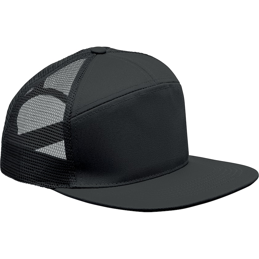 Cappellino in cotone con rete sul retro. La personalizzazione può essere realizzata con stampa a un colore o ricamo.