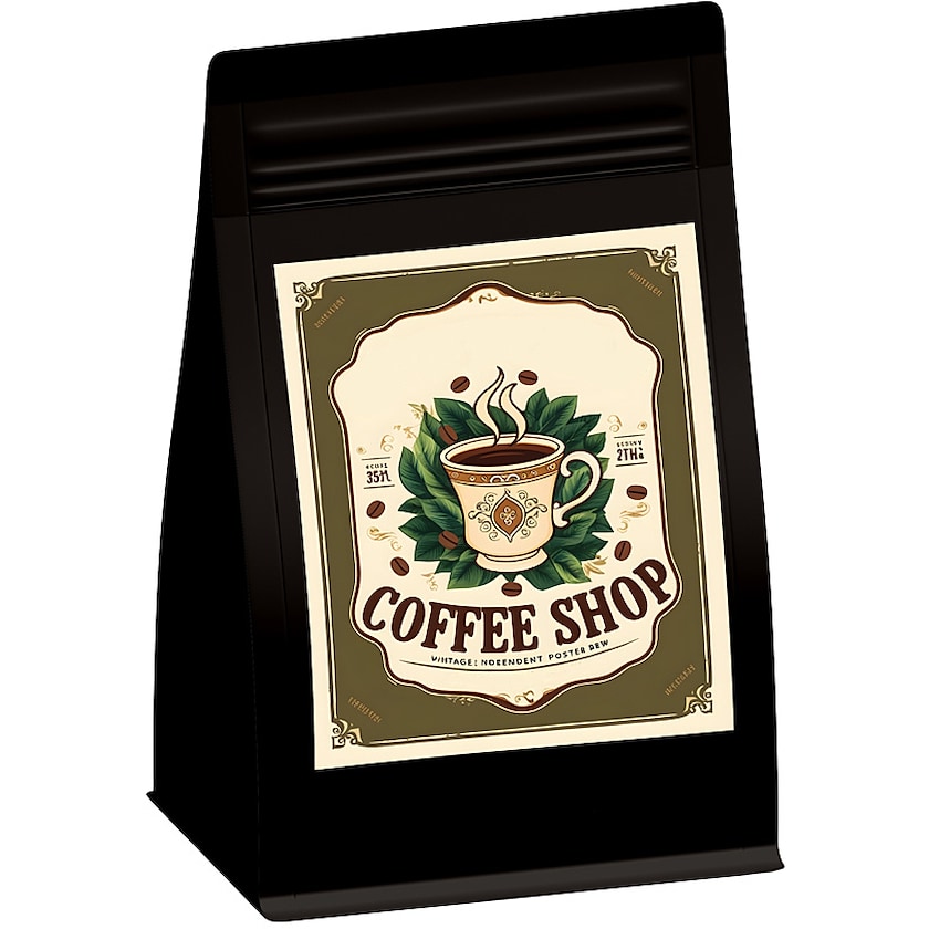 Busta con 70 grammi di caffè Arabica di prima qualità. Puoi scegliere tu stesso tra caffè macinato e interi chicchi di caffè tostati, e tra buste color nero, bianco o color naturale. La tua stampa viene realizzata su un adesivo applicato al davanti della busta. Sul retro si trova un'etichetta che descrive il contenuto.
