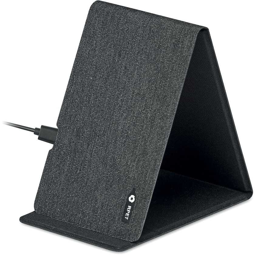 Caricabatterie pieghevole senza fili in materiale ecologico. Folcroft è realizzato in rPET, ossia in bottiglie di PET riciclate. Il caricabatterie è compatibile con tutti i telefoni cellulari di ultima generazione.