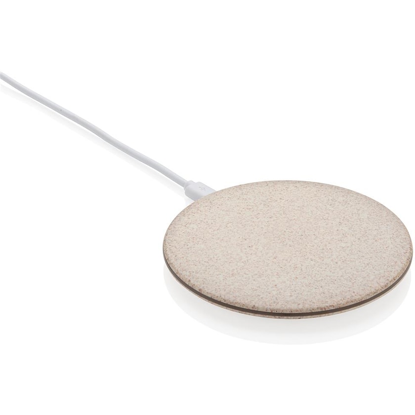Caricabatterie senza fili eco-compatibile realizzato in 35% fibra di grano e 65% plastica. Un indicatore LED si accende quando il dispositivo è in carica. Compatibile con tutti i dispositivi ricaricabili senza fili, come ad esempio la nuova generazione di Android, iPhone 8 e seguenti.