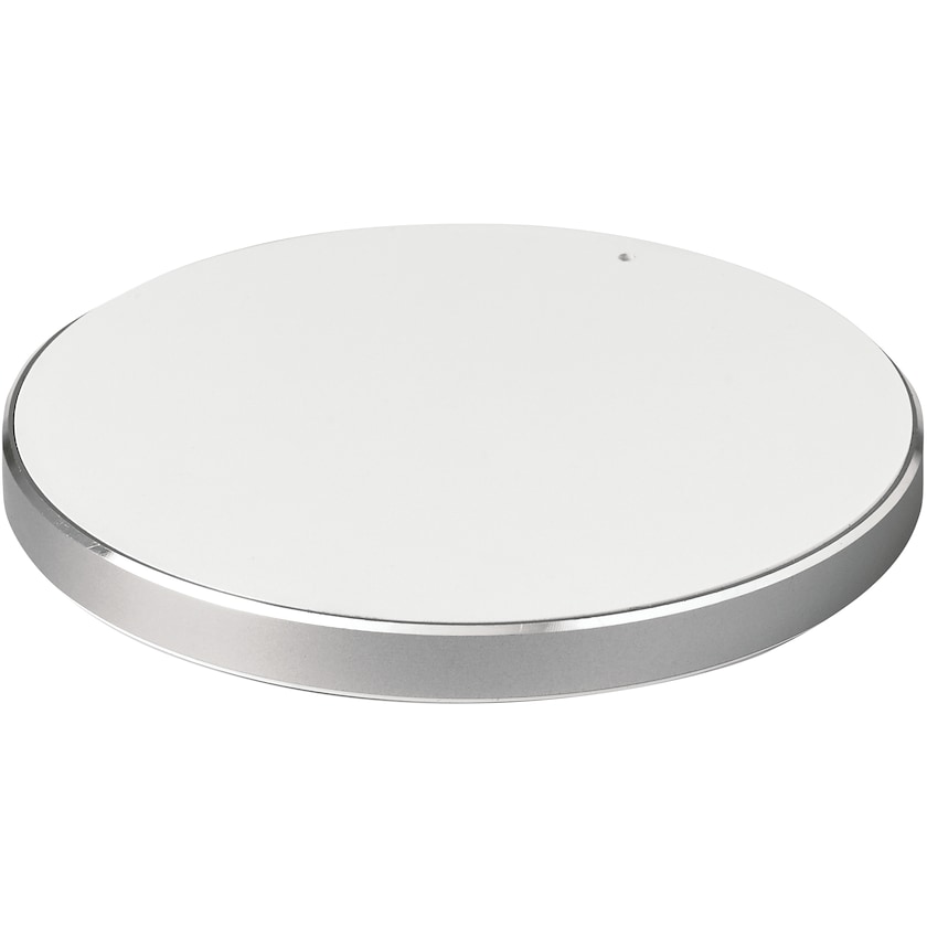 Caricabatterie senza fili elegante con dettagli in alluminio. Il caricabatterie ha ingressi da 5V/2A e da 9V/1,67A e uscite da 9V/1A con una potenza di ricarica di 5W o 10W. Viene consegnato all'interno di una confezione regalo.
