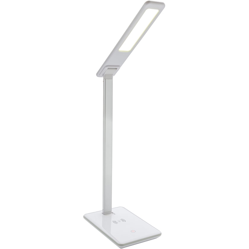 Caricabatterie senza fili con lampa da tavolo 2 in 1. Per caricare il tuo telefonino sarà sufficiente appoggiarlo sulla base di Spiro. È anche possibile la ricarica via cavo. Cavo micro da 150 cm incluso. Input: 5V/2A. USB output: 5V/1A Output senza fili: 5V/1A 5W.