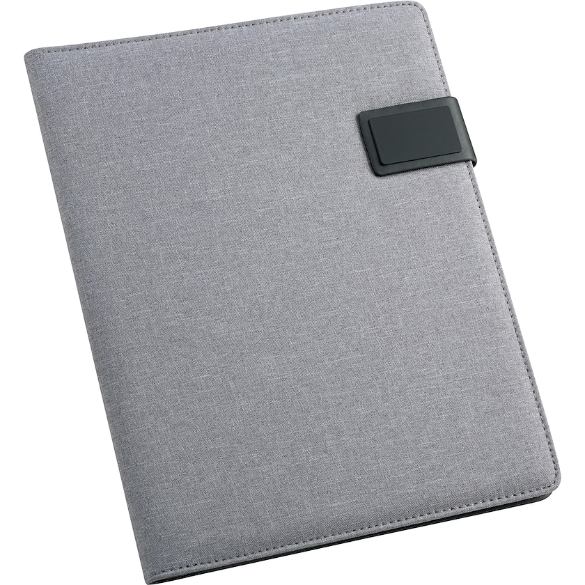Cartella per conferenze in formato A4 con rivestimento in tessuto e finta pelle. La cartella è tenuta chiusa con un magnete. All'interno ci sono 20 fogli a righe. Sulla parte anteriore è una piastra metallica con superficie gommata avviene la personalizzazione con incisione laser. Penna non inclusa.