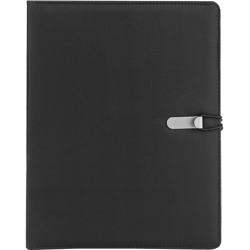 Moderna cartella per conferenze in formato A4 con 2 tasce piccole e 2 grandi. La cartella ha uno spazio dedicato per due USB. Chiusura con laccetto e gancio in metallo.