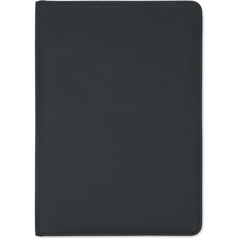 Cartella per conferenze ecologica in dimensione A5. La cartella è realizzata in rPET ecologico. Il blocco appunti contiene 20 fogli a righe in carta di bambù.