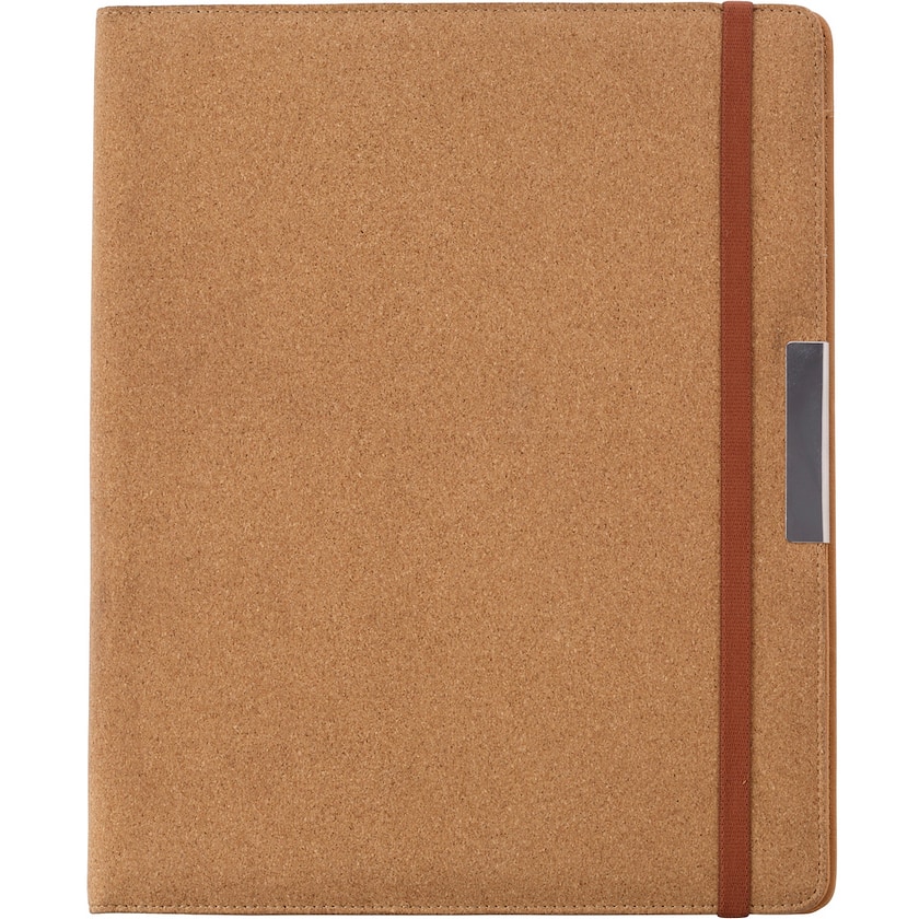 Originale cartella per conferenze in formato A4: realizzata in sughero! Il modello Cork A4 comprende un blocco per gli appunti da 20 pagine, molte tasche interne e chiusura con elastico. Penna non inclusa. Personalizzabile con incisione laser sulla placca in metallo. Ordina le tue cartelline in sughero da Axon Profil!