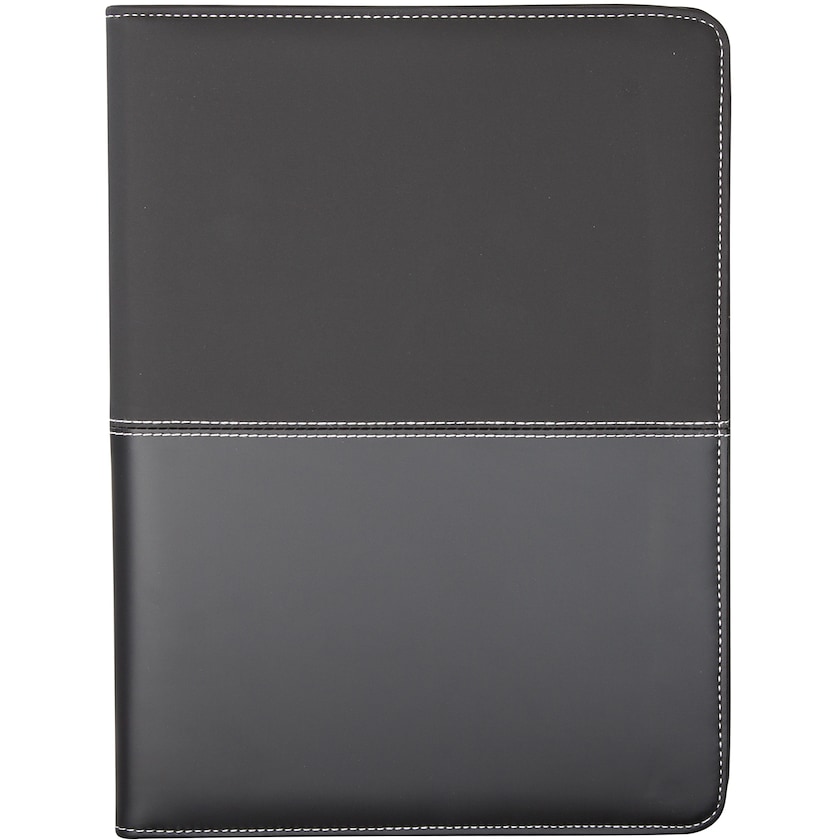 Cartella per conferenze dalle linee pulite, con cuciture a contrasto. All'interno troverete un blocco per gli appunti da 20 pagine, un portapenna ed una tasca per i biglietti da visita. Questa cartellina ha la chiusura con cerniera. La stampa è realizzabile in massimo due colori.