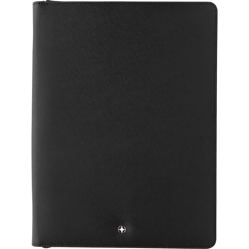Cartella portadocumenti ecologica di Swiss Peak. Questa cartella portadocumenti è realizzata in poliuretano riciclato. All'interno si trova un blocco per appunti con 20 fogli a righe in carta di pietra ecologica.