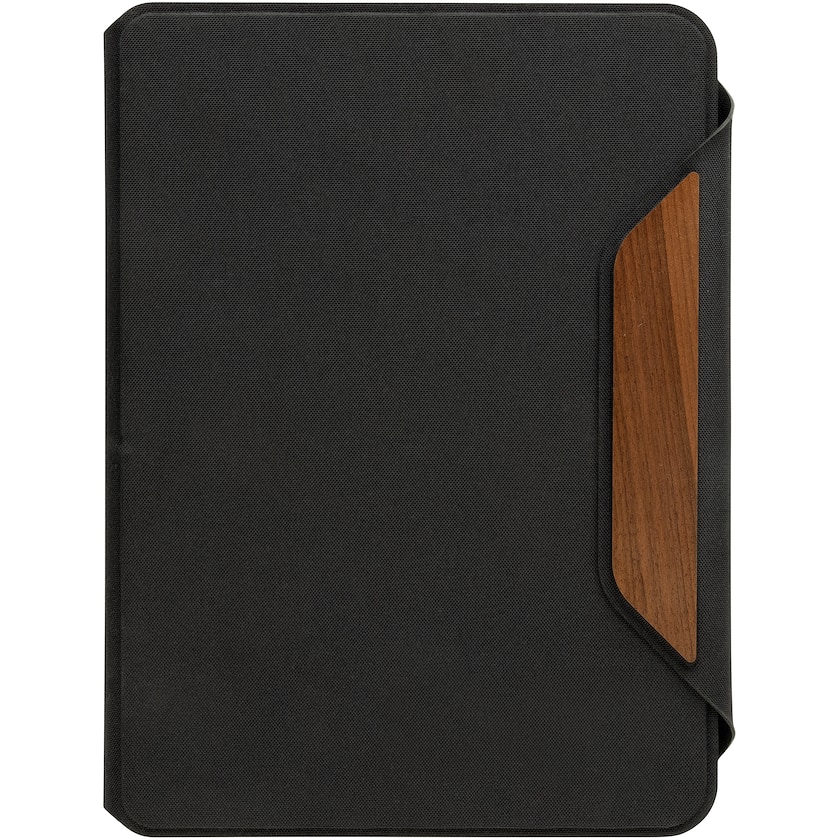 Cartella per conferenze ecologica dal bel design. Monterey A5 è realizzata in rPET e legno di noce. All'interno si trova un blocco appunti con 64 fogli color crema a righe in carta certificata FSC.