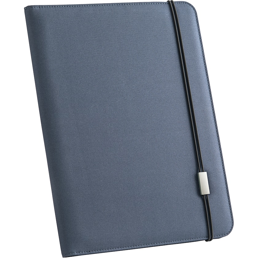 Cartella portadocumenti in materiale riciclato. All'interno si trova un taccuino con 20 fogli a righe. Questa cartella portadocumenti è realizzata in rPET, ossia in bottiglie di PET riciclate.