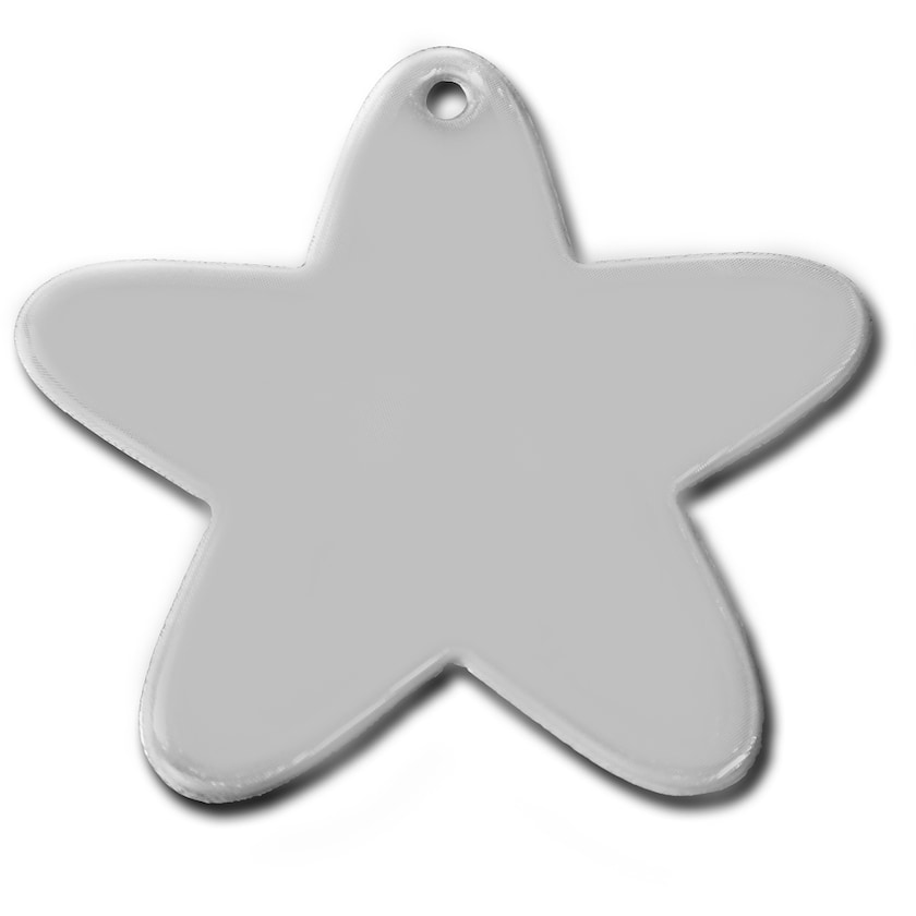 Catarifrangente morbido di alta qualità, a forma di stella. Con laccetto e spilla da balia, o con catenina di metallo. Il materiale catarifrangente è di 3M Scotchlite ed è conforme alla normativa EN13356:2001. La stampa viene effettuata sotto il catarifrangente per non comprometterne l'efficacia.