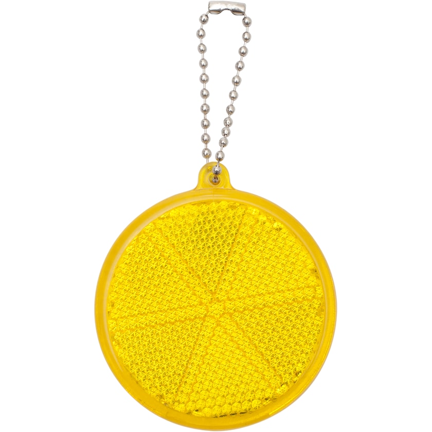 Catarifrangente rotondo con catenina in metallo. Appendilo sulle giacche o zaini. Un prodotto promozionale per piccoli e grandi!