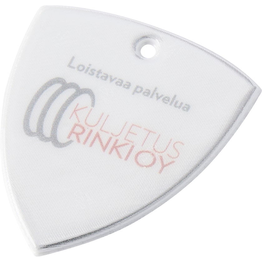 Reflex morbido a forma di scudo. Con laccetto e spilla da balia, o con catenina di metallo. Il materiale catarifrangente è di 3M Scotchlite ed è conforme alla normativa EN13356:2001. La stampa viene effettuata sotto il rivestimento reflex per non diminuire l'efficacia del catarifrangente.